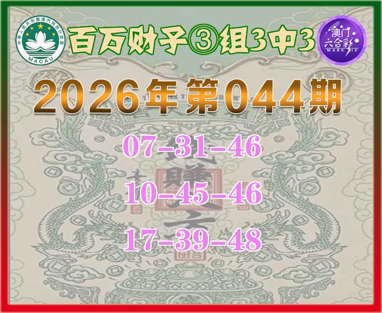 044期:《百万财子》 🍎③组3中3🍎