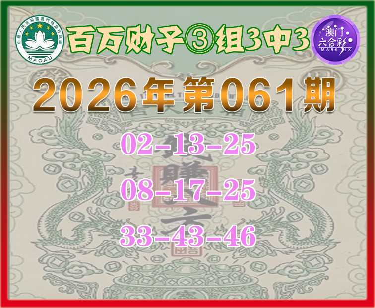 061期:《百万财子》 🍎③组3中3🍎