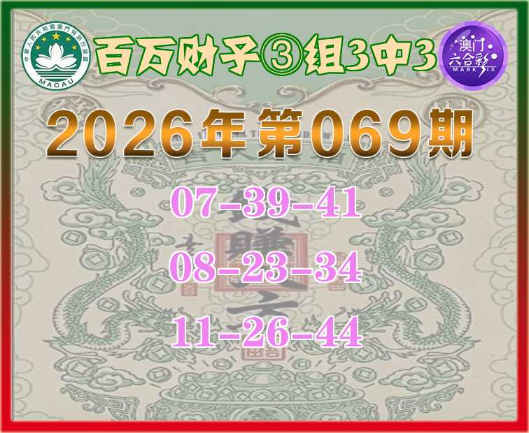 069期:《百万财子》 🍎③组3中3🍎